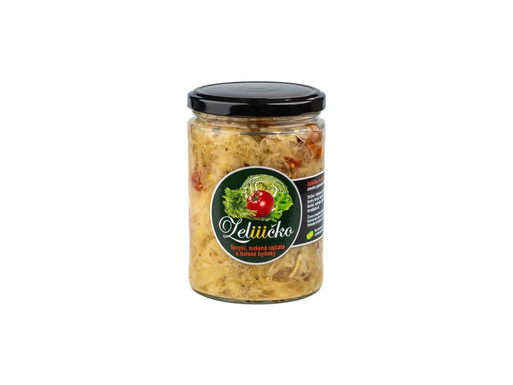 Kysané zelí 500g | Fenykl, sušené rajče a italské bylinky to je chuť Itálie v Zeliiičkovém provedení = tradiční kvašené hlávkové bílé zelí obohacené o čerstvý fenykl, sluncem sušená rajčata San Marzano od Pomodoro Moravia a naši ručně míchanou směsí italského koření.