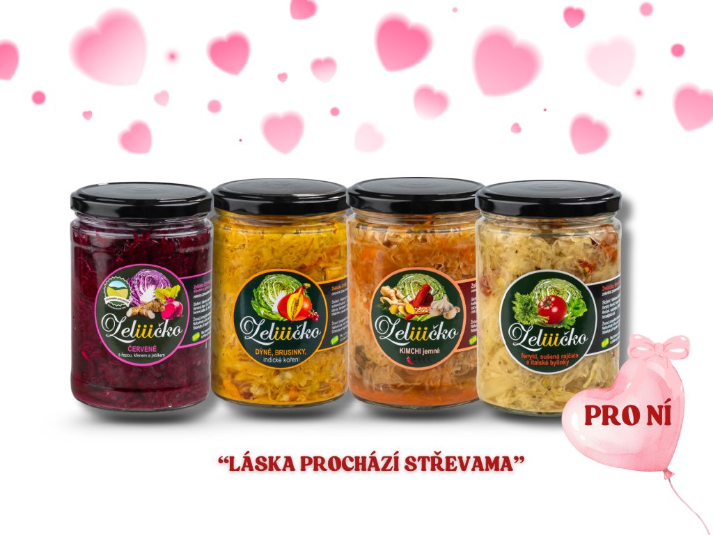 Láska prochází nejen žaludkem, ale i střevama a proč nedarovat na svátek zamilovaných zrovna zeli? ❤️Vybrali jsme z našich zelíček ty, které dlouhodobě patří mezi oblíbené především u žen, pro jejich jemné chutě. Každé zelíčko ze sady je vyrobeno tradiční metodou kvašení (více o metodě na našem blogu: Proč fermentace?).